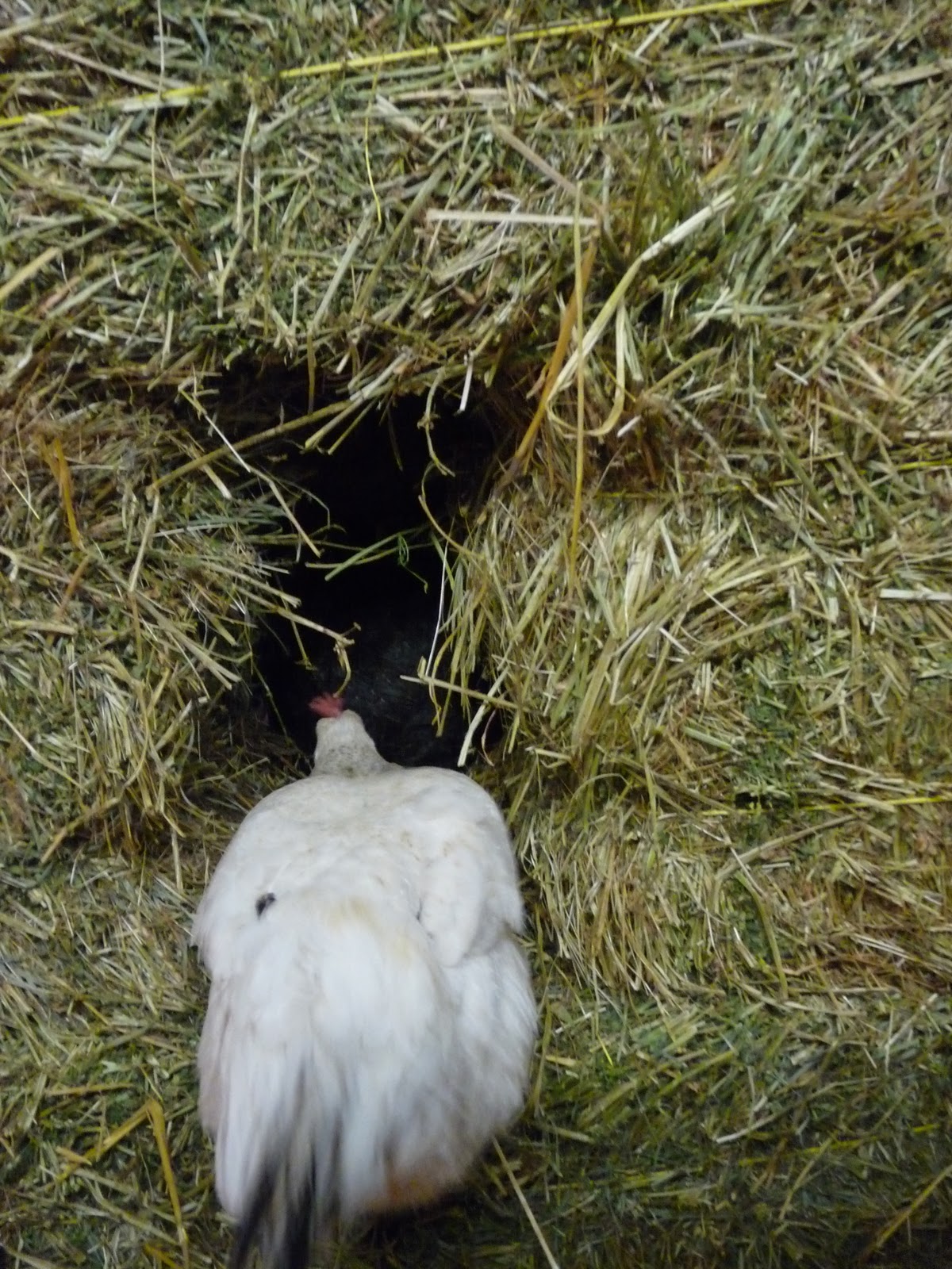 If you have ever seen a happy chicken, then you know how the flock was acting when we put these hay bales in. They were crazy.